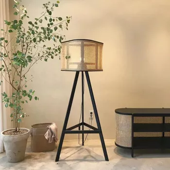 Contemporary Rattan Wicker Floor Lamp – Elegant Iron Lighting for Home Decor