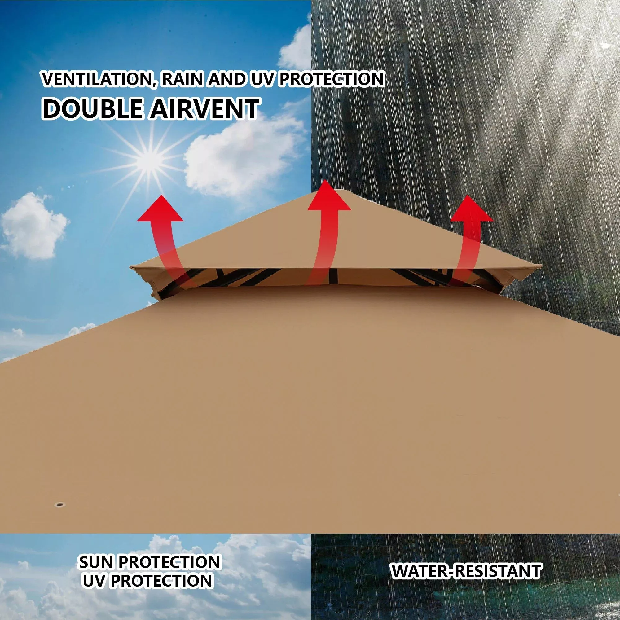 - Double Tiered Roof: This innovative design ensures better air circulation and adds to the gazebo’s stability.