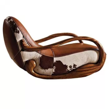 Elegant Ebony Genuine Leather Rocking Chair: Modern Minimalist Luxury Chaise Lounge